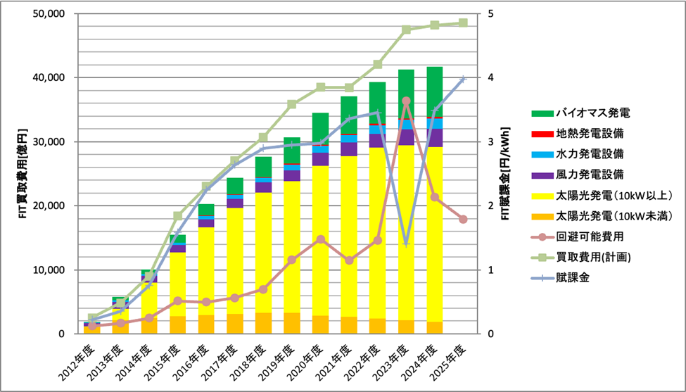 図10: FIT制度による買取費用および賦課金などの推移