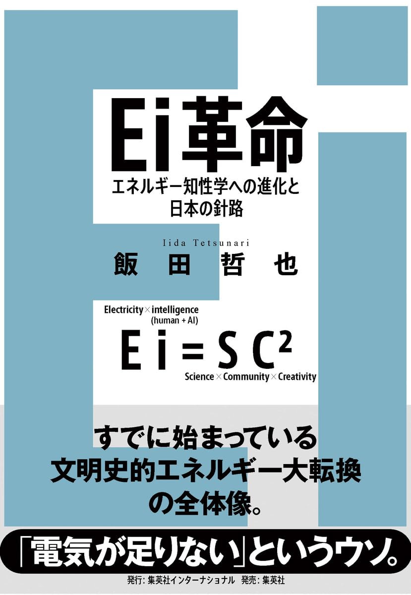 当研究所所長 飯田哲也は、書籍『Ei革命 エネルギー知性学への進化と日本の針路』を集英社インターナショナルより出版いたします(2026年1月26)。本書は、再生可能エネルギー電力×AIの急速な拡大がもたらす「シン・オール電化社会」という新しいエネルギー文明の姿と、その中で日本が取りうる政策・ビジネス・地域実装の方向性を示すものです。